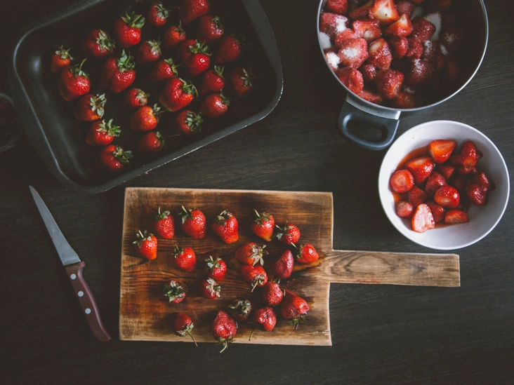Этот рецепт адресован всем, кто мечтает сварить варенье, но кому просто не хватает времени, энергии, места на столе или силы духа для большого проекта по варенью и консервированию, какие порой демонстрируют наши мамы и бабушки. Это варенье из клубники или любых других ягод и фруктов можно приготовить прямо в микроволновке, и да, этот процесс действительно может быть таким простым! Многие не верят, что получившееся варенье окажется таким же хорошим, как «настоящее», однако стоит отбросить скептицизм и дать этому методу шанс. Этот продукт получается таким же сладким и легким, как и любой другой домашний или купленный в магазине аналог.
