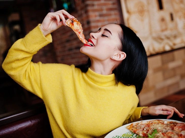 Пицца содержит много калорий при небольшой питательной ценности. Два ломтика могут легко добавить вам до 600 калорий и более чем дневную норму натрия. Но время от времени можно баловать себя этим блюдом, не нарушая полностью здоровую диету (тем не менее, нет хорошего способа избежать высокого содержания натрия, поэтому постарайтесь ограничить потребление натрия во время еды до и после похода в пиццерию).