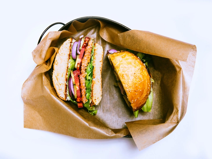 Типичное комбо, состоящее из гамбургера, картофеля фри и напитка, может легко перебить дневную норму калорий. Это настоящий рецепт катастрофы, ведь один только гамбургер во многих заведениях быстрого питания может содержать от 1000 до 2000 калорий (особенно если в нем есть дополнительная котлета, бекон и сыр). Чтобы снизить количество калорий и жира, следует уделять особое внимание размерам порций, начинкам и гарнирам, и все, что вы добавляете к основному блюду, имеет значение — от картофеля фри до газированных напитков или коктейлей. Молочному коктейлю непременно предпочтите йогурт или простую минералку.