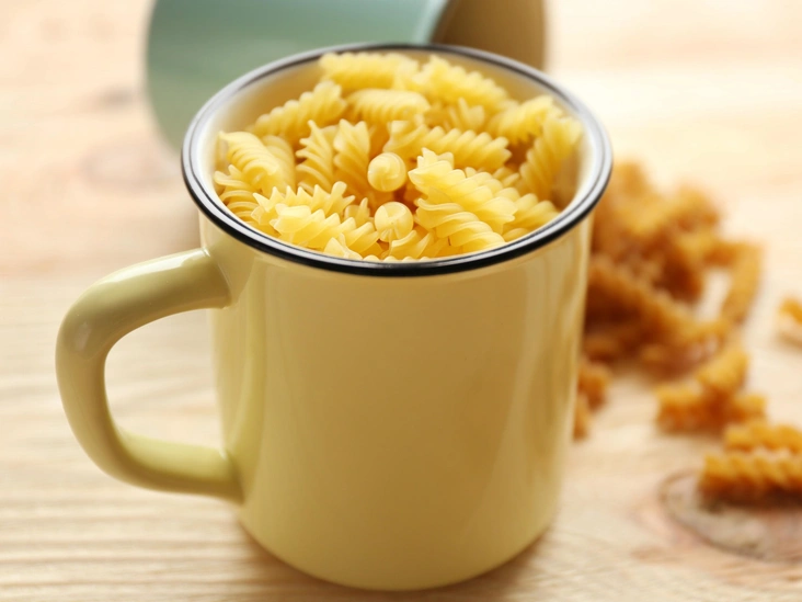 Паста в чашке — идеальный быстрый рецепт, если вы торопитесь и хотите приготовить блюдо на одного. Это не обязательно должен быть примитивный студенческий ужин, но его действительно можно приготовить быстро, и для этого можно использовать одну только микроволновую печь, даже не подходя к плите. Приготовление макарон с сыром в микроволновке занимает всего пять минут, и после даже не придется мыть кастрюлю, а в итоге получается аппетитное блюдо с пищевой ценностью около 380 ккал.