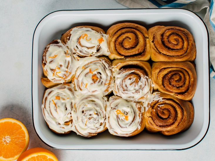 Каждый день может стать праздником, если на завтрак приготовить булочки с корицей. Ну а глазированная версия с добавлением апельсина и вовсе сделает день особенным. Заготовьте легкое сладкое тесто без замеса накануне вечером, чтобы утром его можно было раскатать и испечь идеальное угощение. Когда выпечка будет готова, даже самые закоренелые сони не смогут оставаться в постели, почуяв привлекательный аромат.