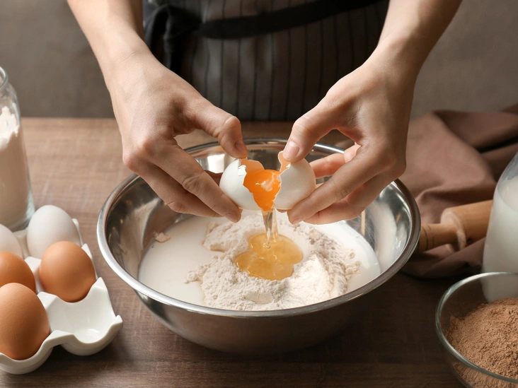 Затем следует подогреть молоко, чтобы соединить его с яйцами. Нагревайте молоко в течение примерно 30 секунд в микроволновке, используя подходящую посуду. Затем добавьте туда же яйца и взбейте вилкой до однородности.