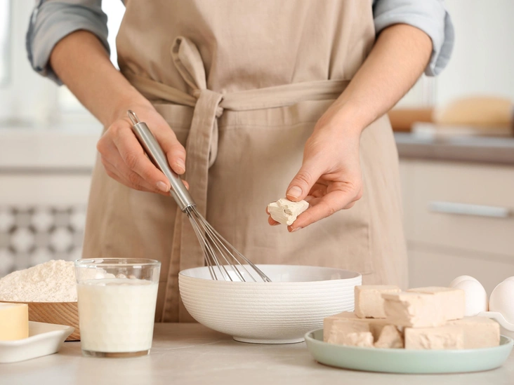 2,5 чайных ложки растворимых дрожжей или стандартных дрожжей, размягченных в 2 столовых ложках теплой воды,