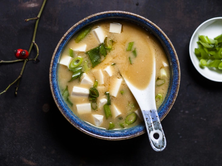Нагрейте воду до 90°С и добавьте пасту мисо, затем добавьте саке, мирин, соевый соус (именно в такой последовательности). Спустя 5 минут бульон будет готов.