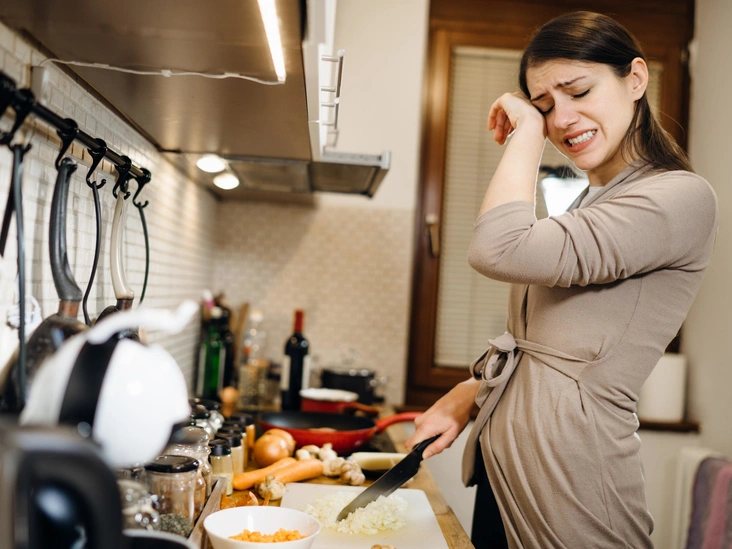 Воздушный поток или даже просто нарезка лука в хорошо проветриваемом помещении может оказаться эффективной, потому что меньше газа попадет в глаза. Вытяжка с высоко поднятым вентиляционным отверстием должна быть оптимальным решением — просто убедитесь, что воздух дует вниз, а не всасывается вверх. И не забудьте открыть окно.