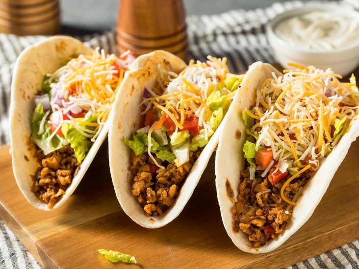В оригинале тако наполняют курицей, болгарским перцем, сыром, зеленым луком, и, конечно, кукурузой. Будет вкусно также с рваной говядиной, маринованными огурцами, картофелем — в общим, с любыми ингредиентами (читайте также: От тако до сальсы: 6 лучших рецептов мексиканской кухни).