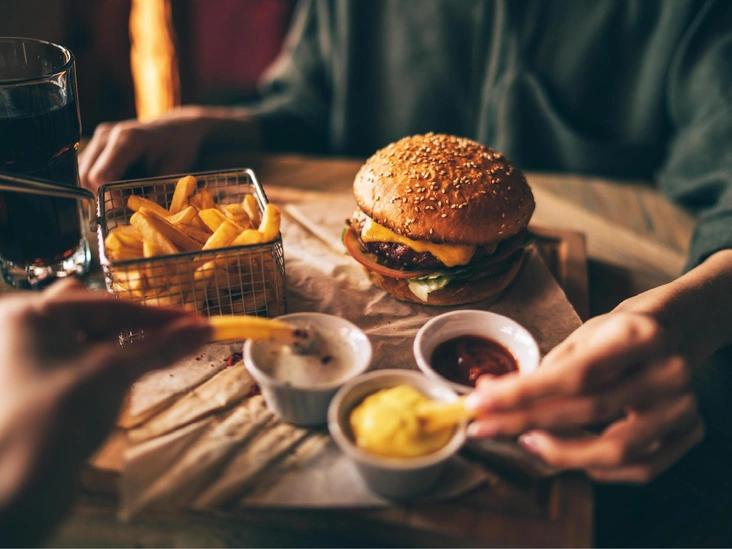 Мясо в бургере готовится также, как немецкий стейк Deutsches beefsteak. Отсюда и второе название «гамбургер» — стейк зародился в городе Гамбург. В оригинале бургер состоит только из говяжьей котлеты, пары булочек, кетчупа или дижонской горчицы, лука и сыра чеддер (читайте также: Пальчики оближешь: 4 лучших рецепта домашних бургеров). Что насчет других ингредиентов: кулинарный критик из New York Times Мими Шератон утверждает, что популярные помидор и листья салата делают мясо холодным.