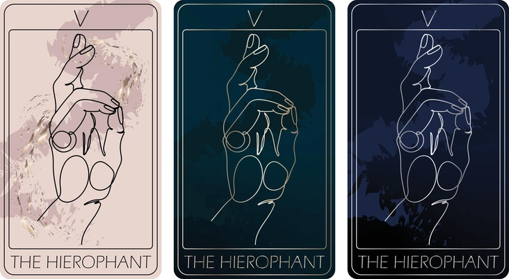 Исторически карта Таро Иерофант воплощает архетип мудреца, духовного лидера и хранителя сакральных тайн. На классических изображениях колоды мы видим фигуру Папы или священнослужителя, восседающего на троне и благословляющего двух учеников. Это означает, что карта Таро Иерофант несет послание о важности передачи опыта, следовании установленным законам и поиске духовного смысла во всех мирских делах.
