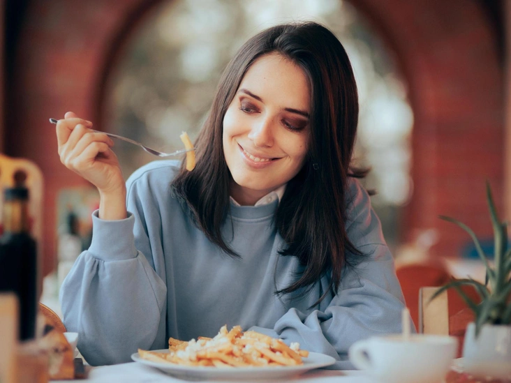 Стоит убрать из меню полуфабрикаты и фастфуд, а также жирную и острую пищу. Перед набегом на холодильник выпить пол стакана теплой воды и подождать 10-15 минут. Не забывайте позавтракать и пообедать. Вам очень важно соблюдать режим. Таким образом вы избежите переедания на ночь несочетаемым набором блюд. Если вот совсем нет времени на полноценный прием пищи, то не оставайтесь голодными, а съешьте фрукт или овощ.