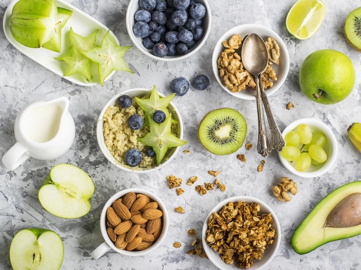 Свежие фрукты, ягоды и орехи