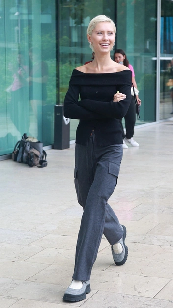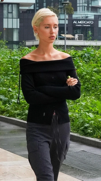 Айрис Лоу ловко сочетает в одном образе разные стили. Например, недавно она решила надеть ультрамодный свитер со спущенными плечами и разрезом из вечернего гардероба в сочетании со спортивными брюками на резинке с накладными карманами. Выход знаменитость не стала делать женственным и элегантным, поэтому в качестве обуви выбрала необычные ботинки с грубой подошвой.