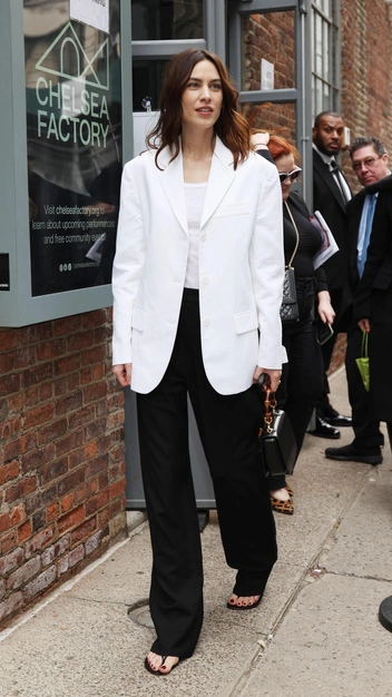 Алекса Чанг показала самый модный образ на весну и лето — его будут повторять все стильные девушки. Попробовать повторить его мы предлагаем и вам, для этого понадобятся: базовая майка-алкоголичка, которая остается в тренде в новом сезоне, акцентный удлиненный белый пиджак и широкие брюки в черном цвете на высокой посадке. В качестве обуви знаменитость выбрала сабо на плоском ходу и завершила лук маленькой кожаной сумкой.