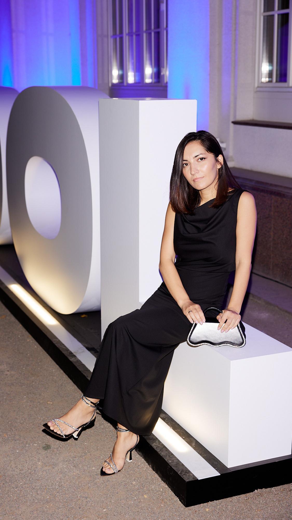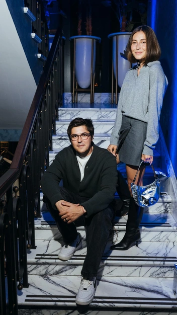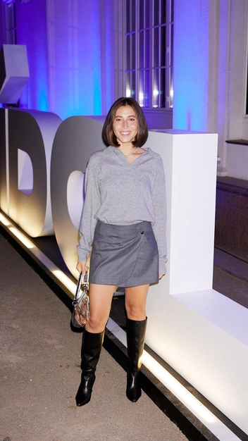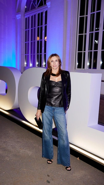 Гости вечеринки показали элегантные образы, каждый из которых подчеркнут сиянием серебра. Например, инфлюенсер и предприниматель Александра Жаркова примерила лаконичный серый свитер с отложным воротником и подобрала к нему мини-юбку с запахом. Стильный наряд она дополнила модными сапогами до колена, а в качестве блеска выбрала сумку с металлическим эффектом.
