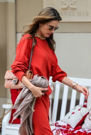 Какой Новый год и Рождество без уютного сочетания зеленого и красного? Впрочем, в этом году знаменитости решили разделиться и носить два цвета отдельно, причем красный явно выигрывает. На днях бразильская супермодель Алессандра Амбросио подала отличную идею выходного праздничного образа с его участием: летящее трикотажное платье макси в красном цвете дополнили высокие сапоги в бежевом оттенке, ожерелье в виде крупной цепи и нюдовый клатч.