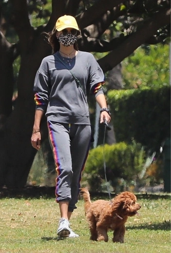 Бразильская супермодель Алессандра Амбросио чаще других знаменитостей выбирается на семейные прогулки с питомцем, возлюбленным и детьми. Для моционов знаменитость подбирает модные, но комфортные аутфиты, которые точно стоит взять на заметку тем, кто не засиживается дома и все-таки покидает жилое пространство несколько раз в неделю. Эта полуспортивная комбинация вошла в наш топ-лист самых практичных и универсальных звездных образов периода пандемии. Важный момент: не забываем про то, что маска для лица может превратиться в стильный аксессуар — берем на заметку модель в леопардовом принте, как у Алессандры.