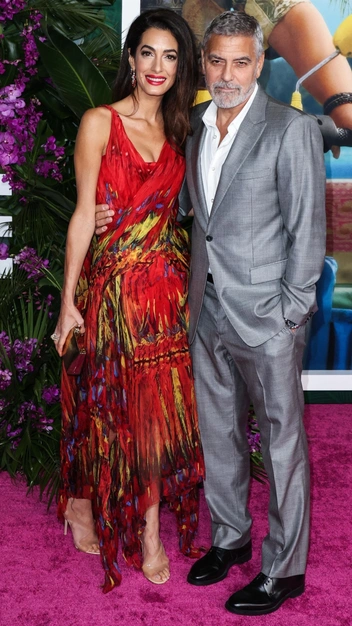 Амаль Клуни поддержала супруга на премьера его нового проекта в Лос-Анджелесе. Фотографам селебрити позировала в ярком красном платье с узором Alexander McQueen. Образ завершили нюдовые босоножки и ярко-алая помада.