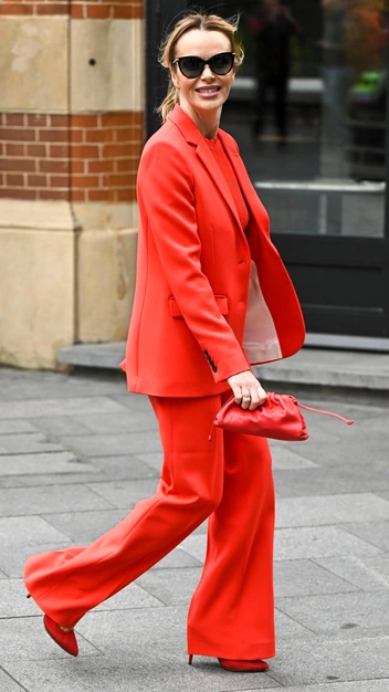 Тотал-лук — самый модный аутфит этого лета, к тому же еще эффектнее он выглядит, когда состоит из ярких оттенков. Оранжевый цвет, как у Аманды Холден, придает внешнему виду свежесть и сияние, поэтому его точно следует добавить в свой летний гардероб. Но наше внимание привлек клатч, напоминающий мешочек из-под обуви. Именно на него впервые задала тренд Ирина Шейк, и вскоре подобный аксессуар стал появляться в коллекциях самых разных дизайнеров. Вряд ли в него можно поместить что-то серьезное, зато образу он придает эффектность и необычность.