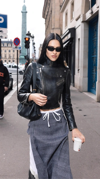 Восхищаемся чувством стиля Амелии Грей — ей легко удается интегрировать модные тренды в свой гардероб и при этом не потерять свою изюминку. Она не любит слишком женственные образы, поэтому нежные вещи она всегда балансирует. На этот раз селебрити, например, подобрала к клетчатой юбке кожаную куртку с потертостями и грубые ботинки из кожи. Завершили эффектный аутфит спортивные очки, объемная сумка и пояс от белья.