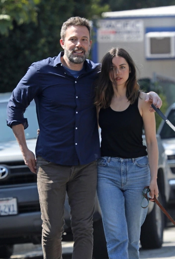 В Нью-Йорке прогулку с собакой в парад моды превращает Эмили Ратажковски, а в Лос-Анджелесе орудует другая звездная банда – Ана де Армас и Бен Аффлек. Влюбленные регулярно попадают в объективы камер папарацци и не стесняются проявлять свои чувства на публике. А Ана помогает нам не скучать и показывает, что хранится в ее повседневном гардеробе. Так, на днях она вышла в кэжуал-наряде, удобном для прогулок – базовой черной майке, mom-джинсах и черных грубых ботинках.
