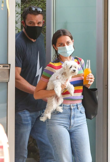 Актеры Ана де Армас и Бен Аффлек практически все свободное время проводят вместе – и, кажется, мы уже не можем представить их по отдельности. Накануне папарацци вновь застали парочку во время прогулки, и Ана как обычно выглядела комфортно и при этом смогла интегрировать в образ необычную вещь. На этот раз в поле зрения актрисы оказался забавный топ в цветную полоску. Его она решила уравновесить лаконичными и сдержанными вещами – базовыми джинсами и нюдовыми балетками.