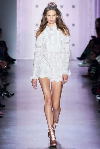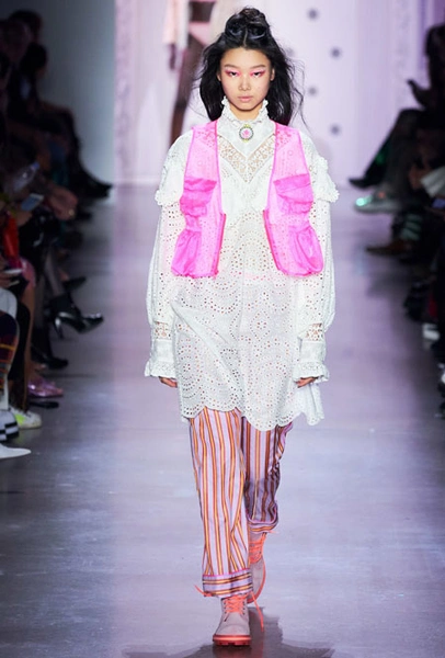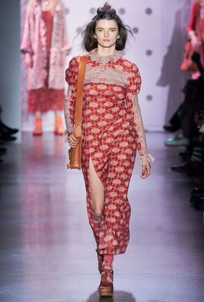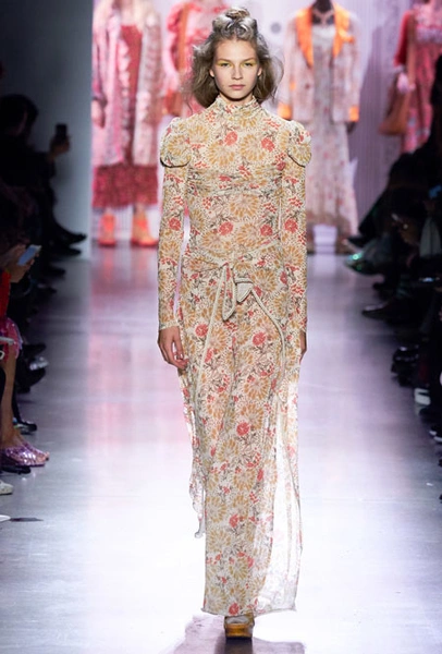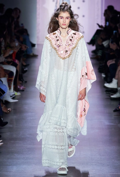 Новый показ бренда именовался VICTORIANNA – и уже из названия легко понять, чем в новом сезоне вдохновлялась основательница американского бренда. Для весны и лета Энна Суи решила объединить свою любимую бохо-эстетику с классическими составляющими викторианского стиля: рюшами, кружевными вставками, платьями с пышными рукавами-буфами и воротниками-стойками. Ключевой палитрой нового сезона были выбраны оттенки сладкой ваты и десертные цвета: нежный фиалковый, розовый, бирюзовый, оттенки лимонного парфе и клубничного сорбета.