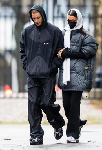 За новым романом Беллы Хадид ее поклонники следят с особенным вниманием: о подробностях своих отношений с известным арт-директором звезда старается не распространяться, но она уже не раз обмолвилась, что безумно счастлива в новых отношениях. Судя по всему, Новый год Белла также провела в компании Марка, а в первый день 2022-го даже выбралась вместе с ним на короткий моцион по городу. Для совместной прогулки влюбленные скоординировали образы и представили стильные аутфиты в полуспортивном стиле: оба примерили пуховики Nike и кроссовки New Balance.