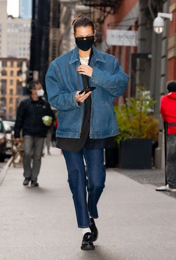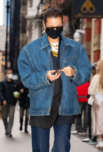 Белла Хадид продолжает свой рейд по мужским отделам. На этот раз она решила примерить все и сразу и показала, насколько стильно и необычно могут выглядеть образы (которые к тому же согреют вас в холода). Девушка сочетала базовую футболку с джемпером в стиле преппи, поверх надела оверсайз-пиджак и завершила аутфит объемной курткой из денима – получилось тепло и стильно.