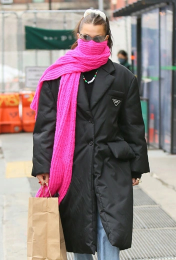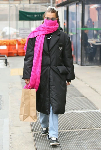 Холода – совсем не помеха к тому, чтобы выглядеть стильно. Это успешно доказывает на собственном примере Белла Хадид, которая последнее время с особым трепетом относится к комфортным трендам, но при этом не забывает, что она – икона стиля, за которой повторяют миллионы. Накануне она решила показать практичный образ, в котором отправилась на ланч с друзьями. Белла примерила трендовый оверсайз-пуховик от Prada, дополненный свободными джинсами в стиле 90-х и базовыми кроссовками. Поскольку наряд получился довольно мрачным, модель решила поэкспериментировать с аксессуарами и выбрала ярко-розовый шарф и украшение с бусинами и бисером.