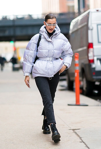 23 марта Белла Хадид была замечена у Milk Studios в Нью-Йорке. Для прогулки модель выбрала объемный пуховик Ienki Ienki, дополнили который укороченные черные джинсы, черные мартенсы и нейлоновая поясная сумка от Prada.