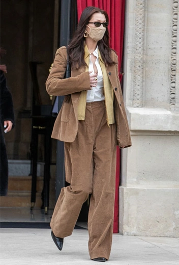 Топ-модель Белла Хадид увлеклась многослойностью уже давно. Причем она мастерски использует этот прием как для повседневных базовых образов, так и для нарядов для особых случаев. Сейчас звезда приехала в Париж, где сейчас проходит кутюрная Неделя моды. Для выхода на публику Белла выбрала вельветовый костюм со свободным пиджаком и брюками с завышенной талией, а также дополнила образ тонким пиджаком на молнии, базовой рубашкой и крупными акцентными украшениями.