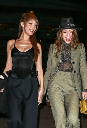 На этой недели звездные сестры особенно щедры на совместные выходы: они уже успели появиться в монохромных костюмах на церемонии «Power of Women» от Variety в минувшую пятницу и смотрелись великолепно. На свадебном приеме американского дизайнера Марка Джейкобса (он сделал предложение Чарли Дефранческо) Джиджи и Белла появились в брючных комбинациях в черном и светло-зеленом.