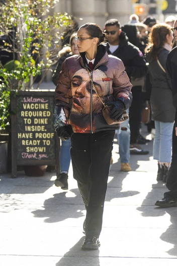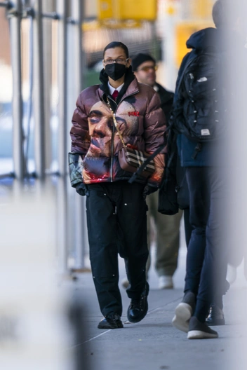 На днях младшая Хадид в очередной раз доказала, что является одним из самых смелых стритстайл-экспериментаторов в мире моды. Девушка отправилась на благотворительное мероприятие в компании любимого человека — Марка Калмана — и выгуляла по этому случаю оригинальный лук в эклектичном стиле, который уже стал фирменной карточкой звезды. Белла соединила в одном образе дутый пуховик с фотопринтом, черные брюки, грубые ботинки и рубашку с красным галстуком. Аутфит дополнили сумка Burberry, очки и выдержанная прическа с низким пучком.