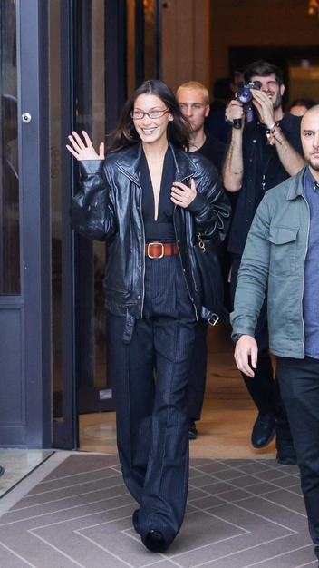 Запоминаем модный прием от Беллы Хадид, как визуально удлинить ноги и сделать их стройнее. Знаменитость недавно была замечена в стильных брюках на высокой посадке, что акцентирует внимание на талии и вытягивает силуэт. В этом безупречному крою также помогает и принт в тонкую полоску, который пришелся по душе топ-модели. Чтобы казаться еще выше, она завершила образ сапогами на каблуке.