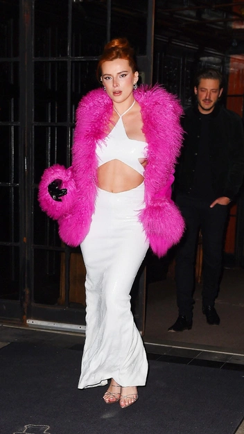 Белла Торн отправилась на свидание с бойфрендом в невероятном образе, на который осмелилась бы не каждая девушка. Актриса и певица надела сексуальное белое платье длиной макси с разрезами, поверх него она накинула модную шубу с перьями в оттенке фуксии. Вечерний выход Белла завершила аксессуарами: серебристыми босоножками и лакированными черными перчатками.