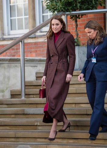 В 2024 году принцесса Кэтрин нечасто радовала нас публичными выходами по причине здоровья, однако уже в новом году количество мероприятий и встреч Уэльской увеличится. И в середине января 2025 года Кейт посетила первую из них, приехав в больницу Royal Masden в Лондоне. Выход был символическим, поскольку именно тут будущая королева лечилась от онкологии. Для встречи с пациентами и сотрудниками Кэтрин предпочла элегантный образ с пальто от Blazé Milano, а также юбкой из шерсти длины макси и джемпером с высоким воротом. Выход завершили коричневые лодочки на каблуке 7 сантиметров и сумка винного оттенка.
