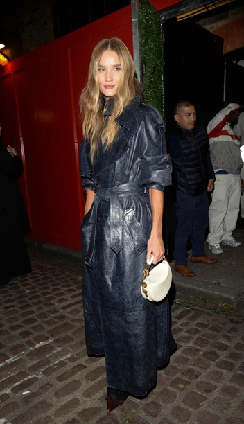 Кожаный тренч — классика любой осени, и Роузи Хантингтон-Уайтли предлагает носить его в темно-синем оттенке. Модель отправилась на показ Burberry в верхней одежде этого бренда, которую эффектно сочетала с вишневыми лодочками и белоснежной сумкой с золотой отделкой. Но кожаный синий тренч также будет хорошо смотреться с чем-то более повседневным: например, джинсами и замшевыми казаками в коричневом оттенке.