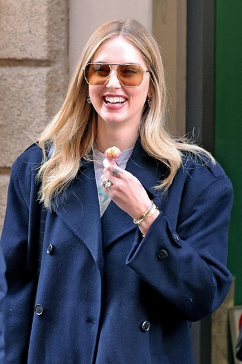 В 2024 году на пике моды были узкие и толстые оправы темных цветов в стиле «офисной сирены». Однако 2025 год обещает, что в моду вернутся очки-авиаторы — это классика, которая в последние годы оказалась забытой. Итальянский блогер Кьяра Ферраньи сочетала аксессуар в золотой оправе с темно-синим тренчем и яркими кроссовками синего оттенка. Остальной образ составили джинсы прямого кроя и простая серая футболка.