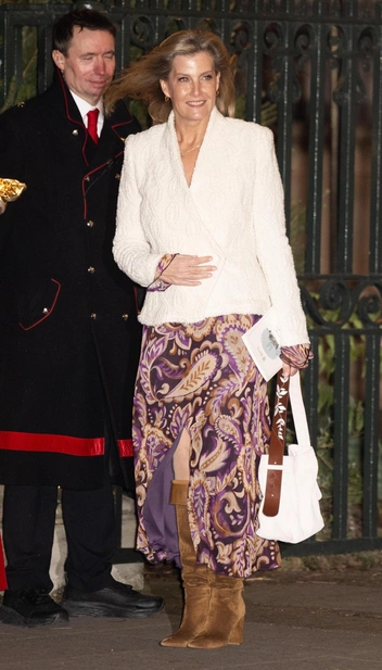 Источники не раз рассказывали о том, что, помимо общественной работы, герцогиня Софи «подрабатывает» стилистом для женщин британской королевской семьи. Например, Кейт Миддлтон полагается на вкус Софи, когда собирается купить что-то новое. Теперь мы точно понимаем, почему — ведь на рождественском концерте в 2024 году герцогиня продемонстрировала один из главных трендов 2024 года. Она надела платье с восточными мотивами в стиле бохо, которое уравновесила белым блейзером и завершила замшевыми сапогами на устойчивом каблуке.
