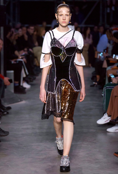 Осенне-зимняя коллекция нового креативного директора Рикардо Тиши для Burberry – на его счету уже вторая: он вновь пробует интегрировать стритстайл, который тесно переплетается со взглядом самого дизайнера, в классику, которой славится культовый британский бренд. В прошлом сезоне он делал это осторожно и дозированно, разделив коллекцию на несколько смысловых частей и удовлетворив клиентов с самыми разными вкусами. Сейчас Тиши делает это намного увереннее и свободнее, к тому же, мельком цитируя свои архивные работы для Givenchy. Удовлетворить вновь получилось многих: и приверженцев того самого традиционного Burberry – при помощи классических узнаваемых тренчей, пальто и костюмов, и тех, кого привлекает экспериментальный дизайнерский взгляд, – с асимметричным кроем и интеграцией уличного стиля.