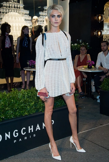 Вслед за Кендалл Дженнер в новый нью-йоркский бутик Longchamp отправилась Кара Делевинь. Модель теперь нечасто можно встретить на подобных мероприятиях: Кара, как говорила она сама, приняла решение сосредоточиться на актерской карьере. Что ж, тем интереснее будет за ней наблюдать! Вельтовое мини-платье на ней, конечно же, из осенне-зимней коллекции францзузской марки.
