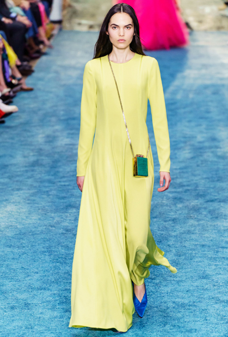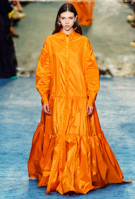 Уэса Гордона, который представляет свою вторую коллекцию prêt-à-porter, не устают хвалить: на плечах 32-летнего дизайнера – огромная ответственность за будущее наследие дома, который сама Эррера доверила молодому специалисту после своего ухода в феврале 2018-го. Однако справляется с этим он довольно успешно, вновь предлагая коллекцию в традициях бренда, но с оглядкой на современные реалии. Канареечные водолазки, оранжевые платья и плащи, яркие вкрапления фуксии, мультяшный цветочный принт – в коллекции яркие и броские цвета отлично ладят с лаконичными формами, легко усмиряя их и подгоняя под будни. Кроме того, поддерживая тренд на миниатюрные аксессуары, дизайнер предлагает серию микро-сумок со вставками из кожи крокодила – не столько практичное, но сколько крайне милое дополнение.