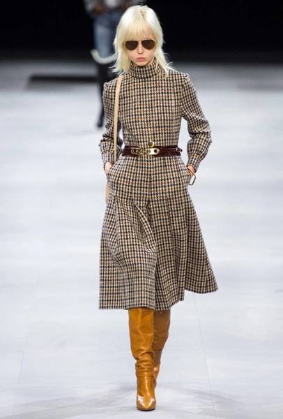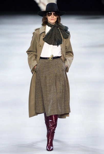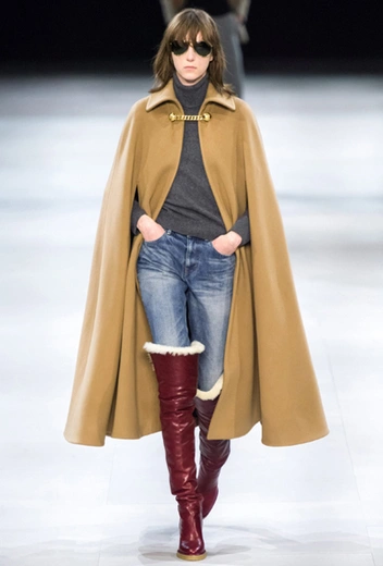 Скандалов на прошедших неделях моды было мало, однако кое-что для любителей горячих обсуждений все-таки произошло. Эди Слиман продолжает интриговать публику на посте креативного директора обновленного Celine и на этот раз, казалось бы, фантазировал в совершенно новом для себя направлении. Дизайнер взял за основу архивные коллекции Celine 70-х и переработал их на свой лад, представив классические кейпы, облегающие синие джинсы, костюмы и расклешенные миди-юбки.