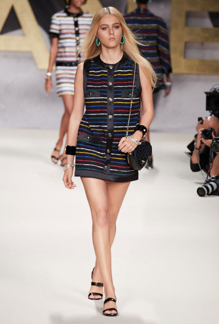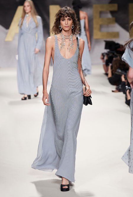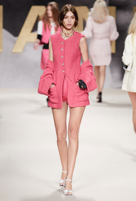 При мысли о культовом доме Chanel сразу представляешь твидовые жакеты 60-х, маленькие черные платья и вневременной гламур. В новом сезоне креативный директор Виржини Виар решила вновь обратиться к архивам Дома и показать, насколько универсальны вещи, представленные еще в прошлом веке. На подиуме дизайнер представила черно-белые купальники, яркие твидовые пиджаки и, конечно же, культовую монограмму Chanel, которая украшала многие наряды. Важную роль в новой коллекции сыграл металлик, который обещает стать хитом сезона, а также необычные кожаные вещи.