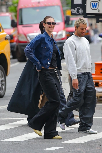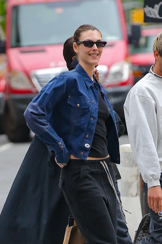 У Виттории весь образ строится вокруг базовых вещей, но именно в этом и заключается ее модная сила: черный топ и расслабленные спортивные штаны она комбинирует с темно‑синей джинсовой курткой, создавая многослойный аутфит без единой лишней детали. Желтые кроссовки и акцентные очки добавляют нужную долю расслабленности, не перегружая картинку. В итоге получается идеальная иллюстрация ее главного правила «чем проще, тем лучше», когда за счет пропорций и сочетания фактур даже спортивный низ выглядит как продуманный стритстайл.