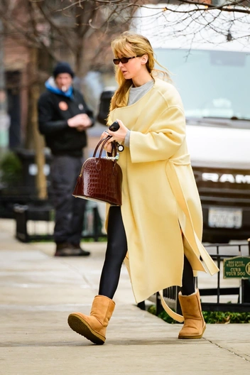 В Нью‑Йорке Дженнифер Лоуренс показывает идеальный аутфит для промозглых будней: поверх серого свитшота и легинсов Alo она накидывает любимое пальто The Row, берет в руку бордовую Lady Bag того же бренда и спокойно комбинирует все это с классическими уггами, доказывая, что «домашняя» обувь может выглядеть как часть продуманного образа, если «поддержать» ее дорогим верхом и элегантной сумкой. Этот выход актрисы лишь закрепляет позиции угг в списке ключевой зимней обуви 2026 года.