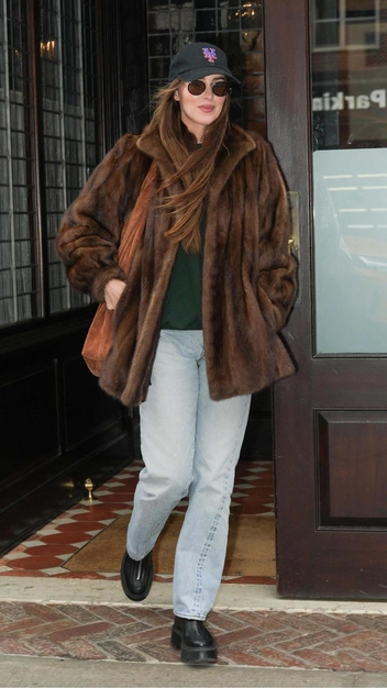 Дакота Джонсон уже перешла на теплый гардероб и появилась на улицах Нью-Йорка в модной шубе — стильной альтернативе пуховику. Она отдала предпочтение фасону с укороченной длиной и отложным воротником. Шубу рекомендуем выбирать свободного кроя, чтобы она гармонично смотрелась с объемными свитерами и шарфами. Завершила выход актриса коричневой замшевой сумкой, кепкой и очками.
