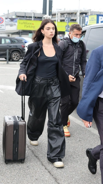 Если вы хотите примерить черный тотал-лук, тогда попробуйте разнообразить фактуры одежды, чтобы образ смотрелся интереснее и эффектнее. Например, Дева Кассель к майке-алкоголичке и свободному пиджаку удлиненного кроя подобрала стильные кожаные брюки с защипами, которые все чаще выбирают модницы по всему миру. Лаконичный образ знаменитость завершила кроссовками и минималистичными украшениями.