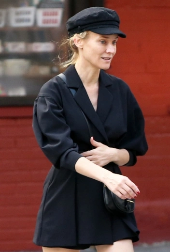 Селебрити не устают переосмысливать наследие Коко Шанель и предлагать свои интерпретации бессмертного тренда. Для Дианы Крюгер маленькое черное платье уже давно стало неотъемлемой частью casual-гардероба, поэтому у актрисы есть целый ряд любимых моделей этой культовой вещи. В осеннем стритстайле звезда выгуливает утепленную версию наряда: черное платье-жакет с запахом она дополняет полуоткрытыми туфлями с драгоценной отделкой и черной мини-сумкой наперевес. Лук традиционно завершает любимый аксессуар звезды — черный картуз.