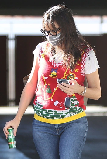 Рождественские свитера уже давно стали классикой. Конечно, они выглядят иронично и забавно, но что еще способно так легко и быстро создать новогоднее настроение в декабре? Дженнифер Гарнер на такой модели не остановилась и решила примерить рождественский жилет. Он выглядит так же весело и при этом более актуально. Звезда добавила к нему базовую футболку, прямые джинсы, спортивные сникерсы и отправилась на небольшую прогулку по Лос-Анджелесу.