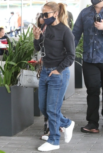 Нечасто можно увидеть Джей Ло в аутфитах не по последней фэшн-повестке: в последнее время каждый стритстайл-выход знаменитости превращается в настоящее дефиле, и мы успели насладиться не одним сезонным трендом в исполнении звезды. Однако даже у таких закоренелых фэшн-икон, как Дженнифер, возникает желание облачиться в самые непритязательные аутфиты и отдохнуть от постоянной модной гонки. Для этого Джей выбирает комбинацию с объемными джинсами, серым джемпером и белыми кедами, которую дополняет любимыми солнцезащитными очками.